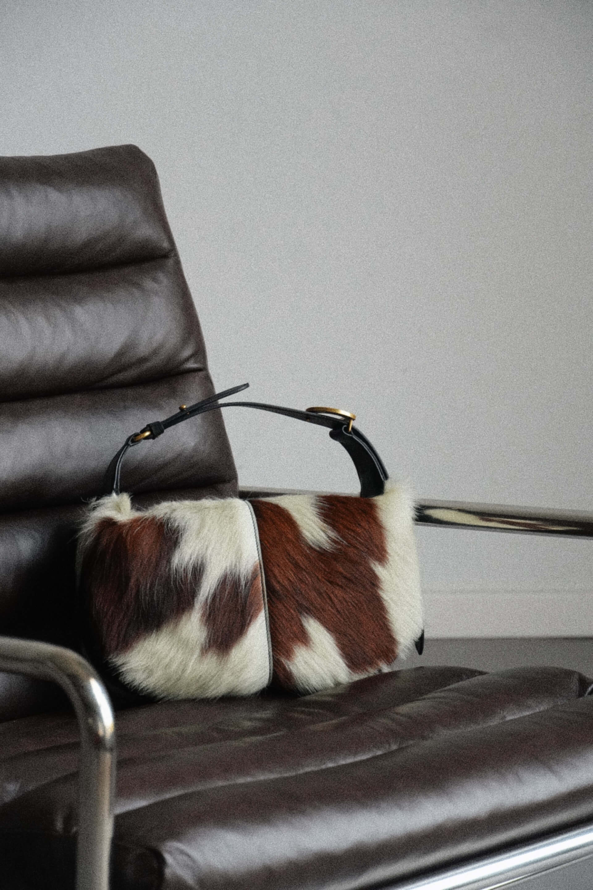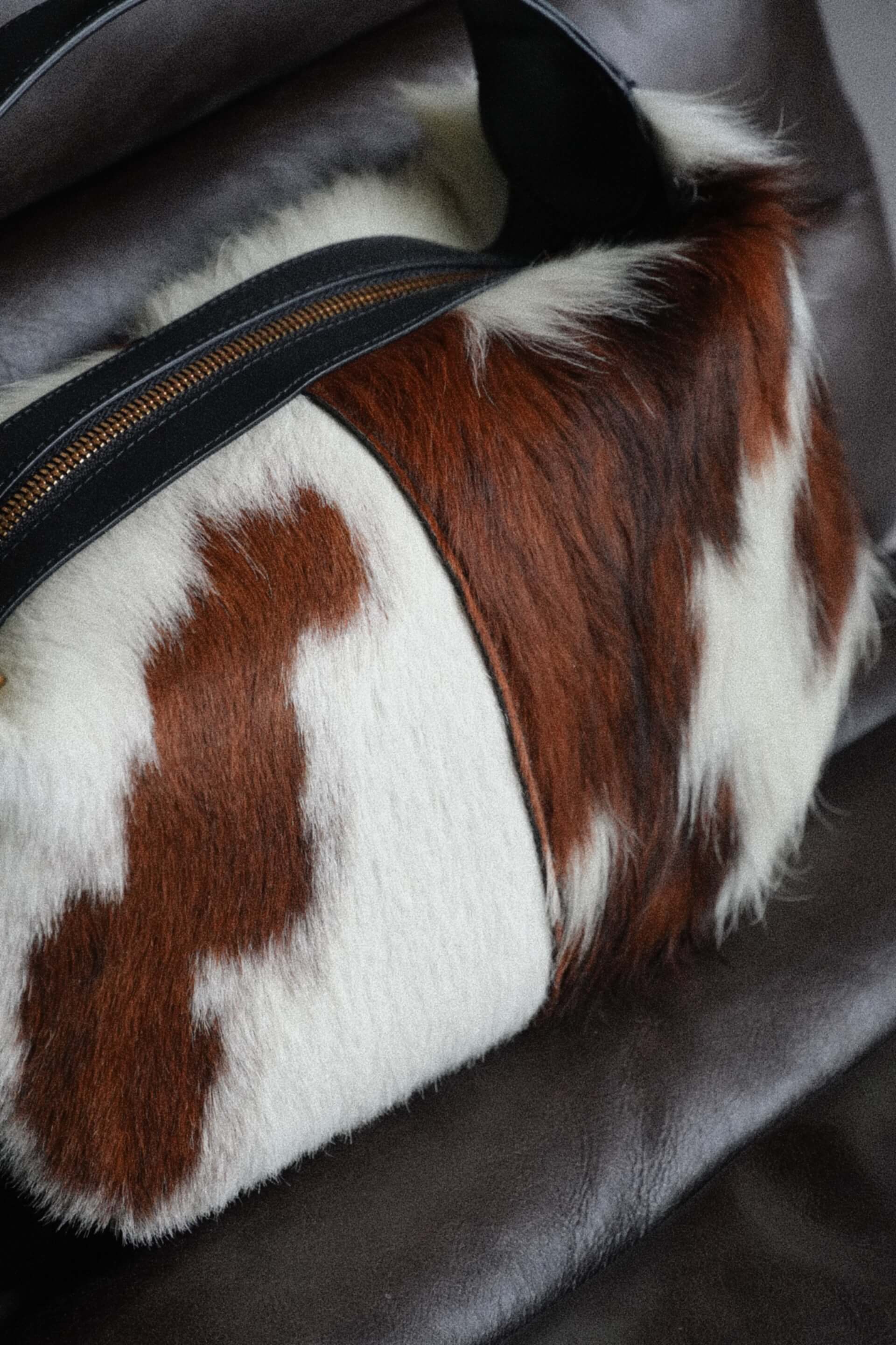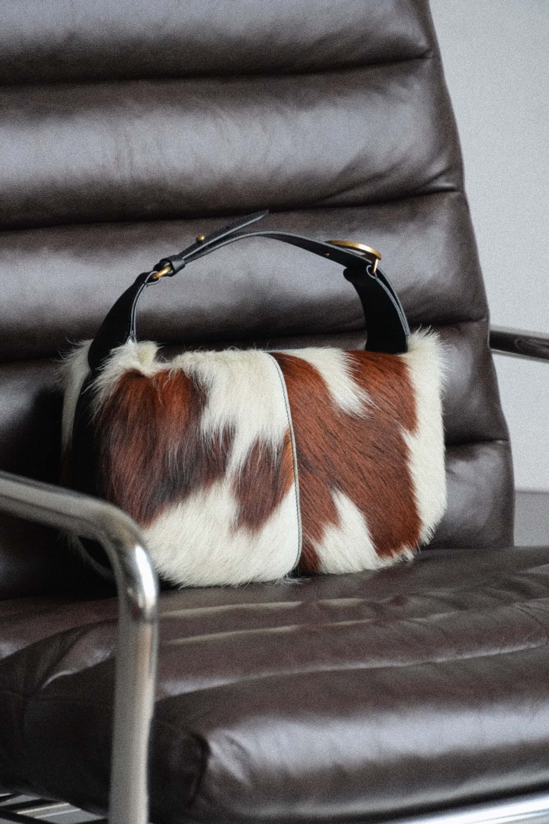 Forma recognoscibilă OLIVIA rămâne neschimbată — echilibrul perfect între proporții și funcționalitate — însă acum fiecare piesă capătă o viață proprie. Pielea cu păr conferă un aspect organic, bogat și tactil, transformând fiecare geantă într-un exemplar unic.