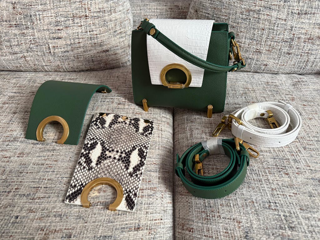 RITA ist modular aufgebaut – Sie können den Bezug durch jede andere Farbe/Textur ersetzen und haben in wenigen Minuten eine völlig andere Handtasche.