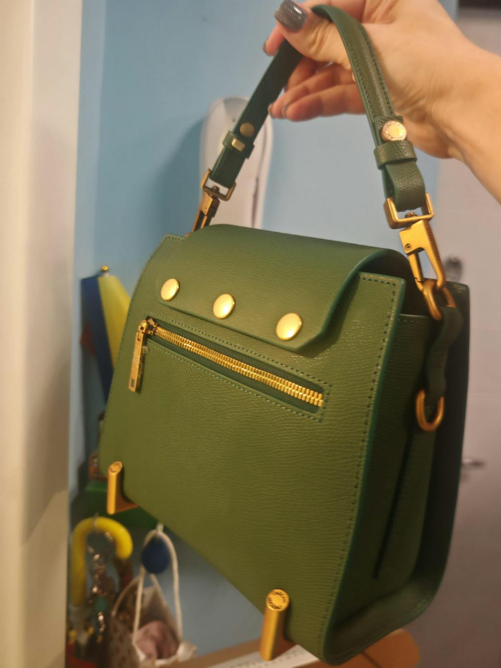 Sie können den Riemen (Schulterriemen) abnehmen und durch einen anderen in einer anderen Farbe ersetzen. So haben Sie genügend Platz, um mit der Handtasche nach Belieben zu spielen.