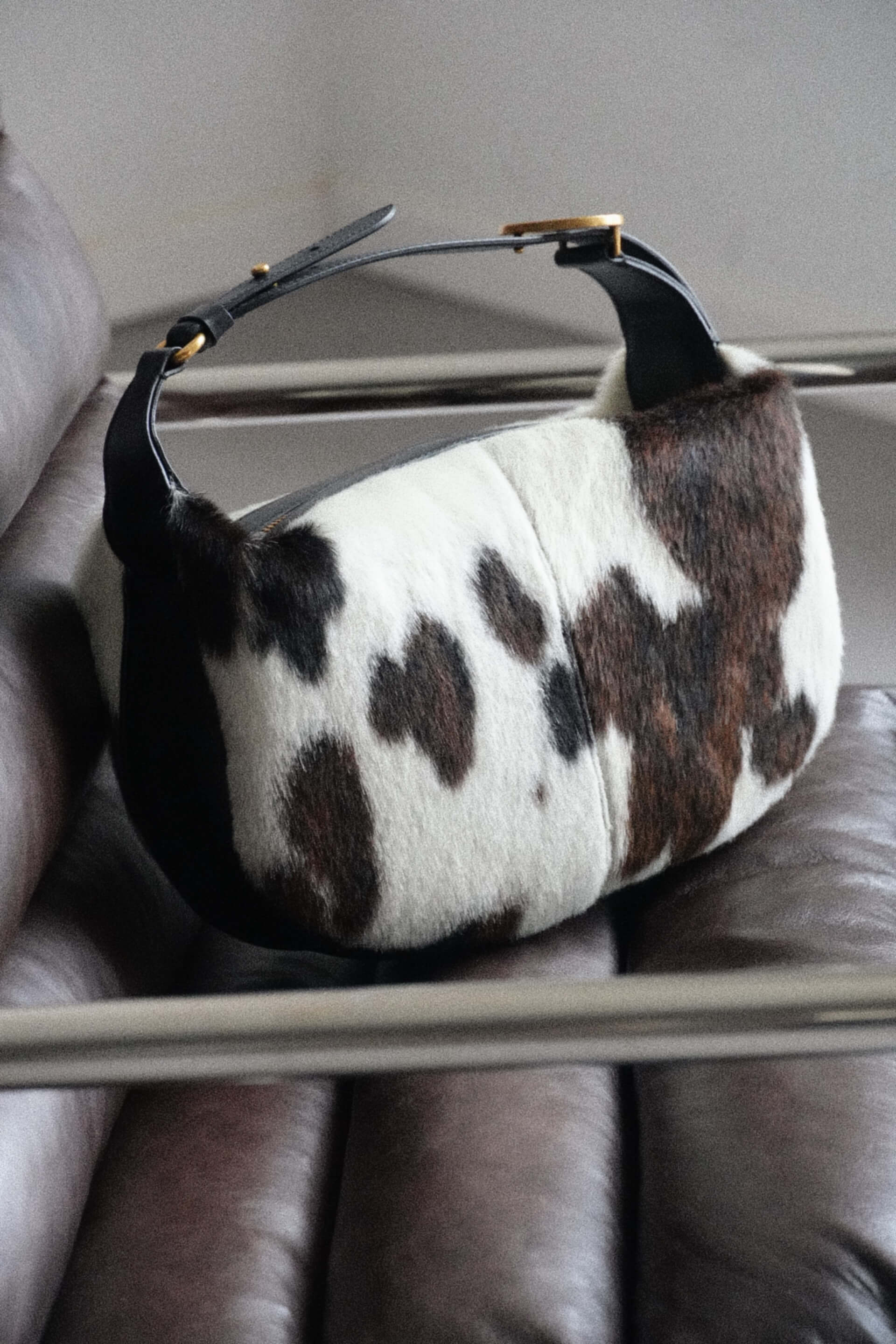Forma recognoscibilă OLIVIA rămâne neschimbată — echilibrul perfect între proporții și funcționalitate — însă acum fiecare piesă capătă o viață proprie. Pielea cu păr conferă un aspect organic, bogat și tactil, transformând fiecare geantă într-un exemplar unic.